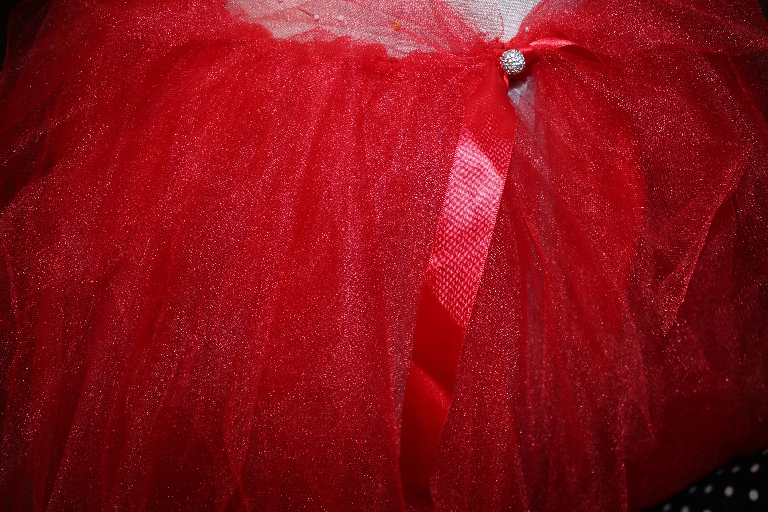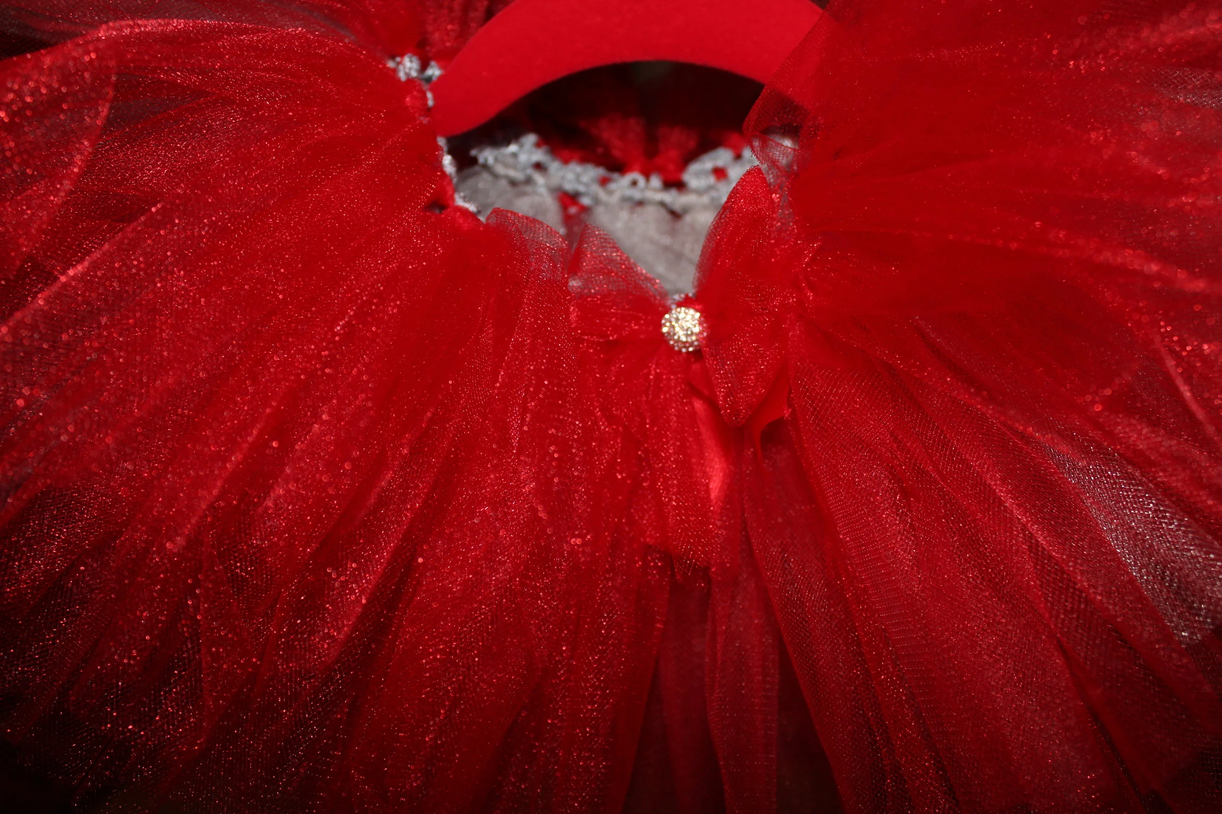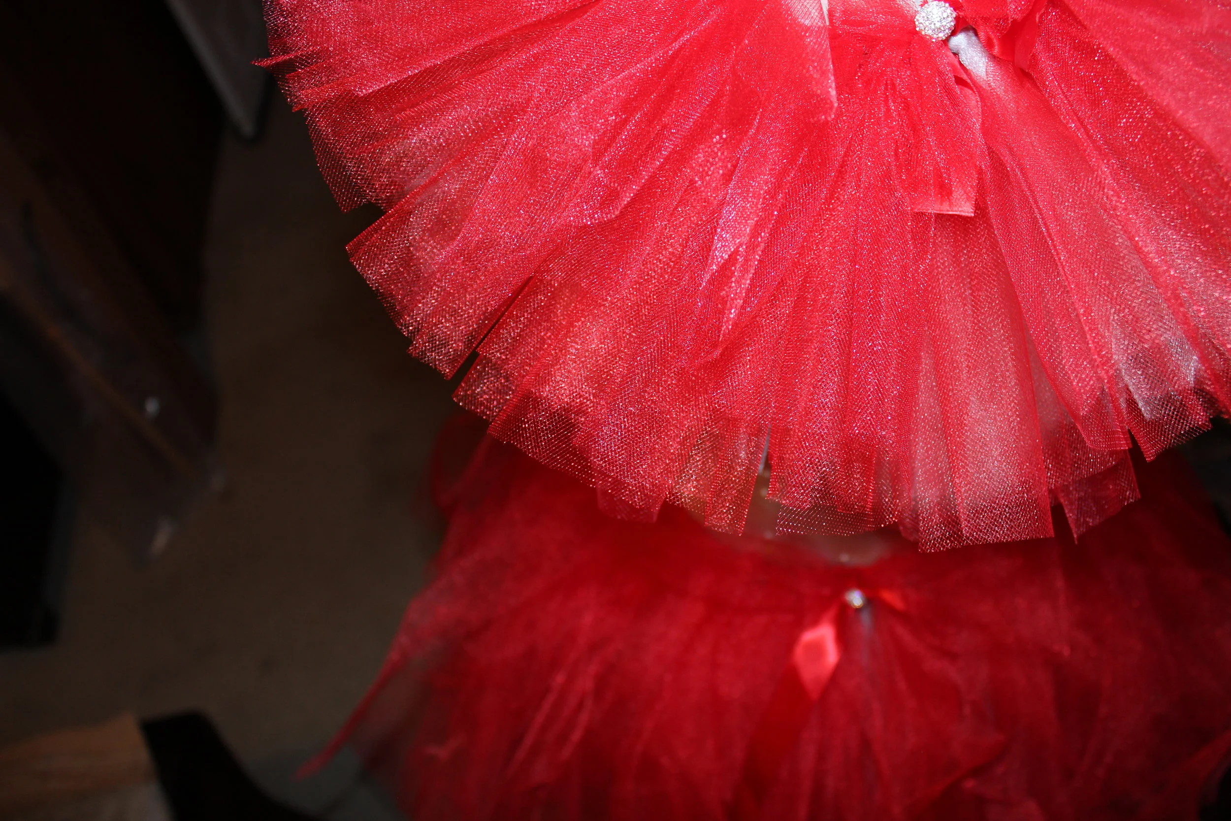 Red & Light Grey Custom Length matching red tutu’s with matching stud and ribbon finish